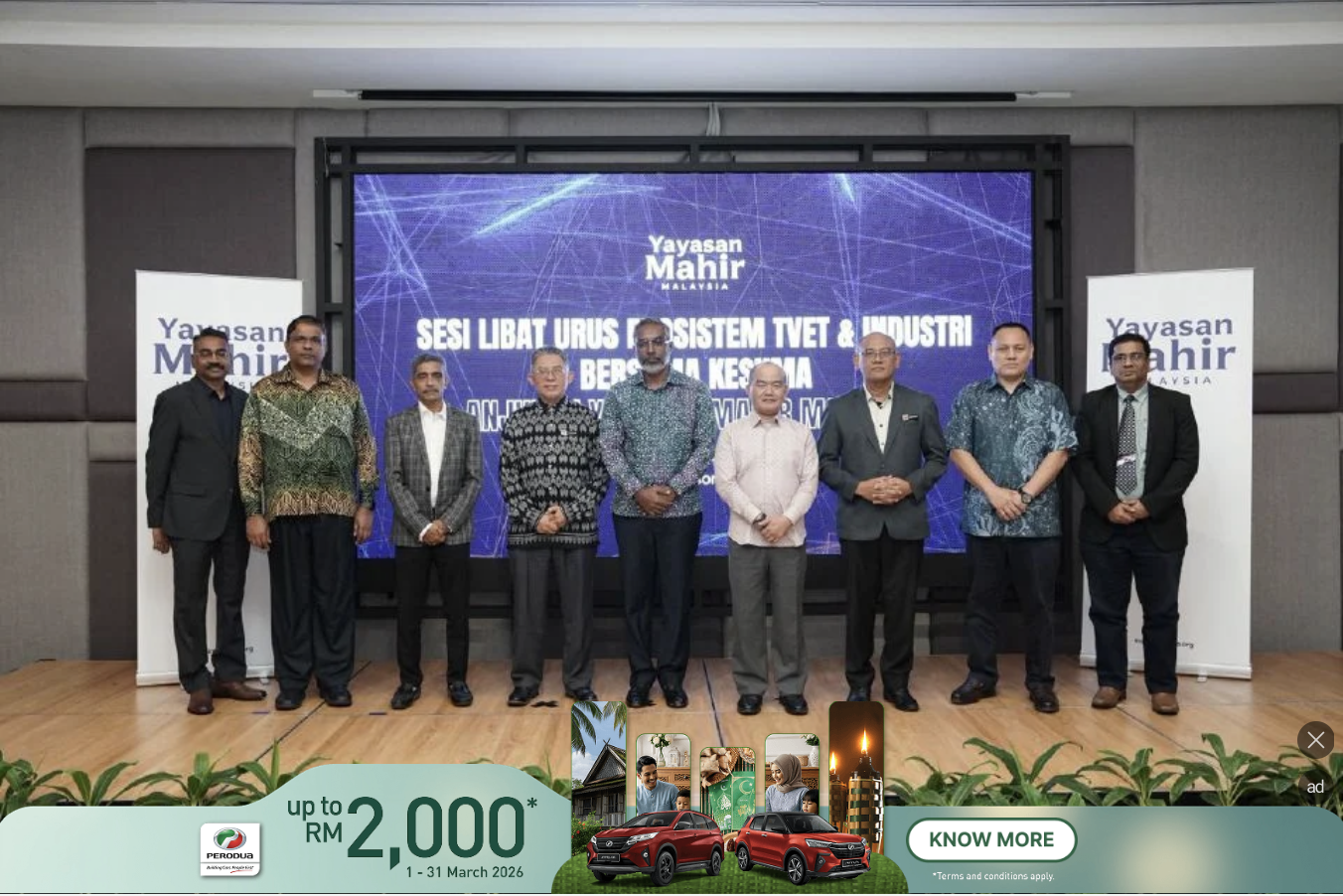 Beliau berkata demikian ketika berucap pada Sesi Libat Urus TVET–Industri anjuran Yayasan Mahir Malaysia bersama Kementerian Sumber Manusia (KESUMA) di Bangi Resort Hotel, di sini, pada Rabu.